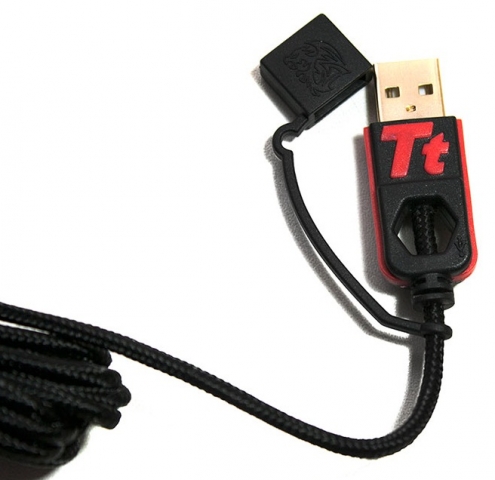 Підключення миші до комп'ютера здійснюється за допомогою USB-кабелю. Його загальна довжина становить 180 см. Спереду кабель щільно прикріплений до контролера за допомогою спеціального фіксатора, який є частиною металевої основи. Таке рішення не можна назвати стандартним, але, безумовно, воно дуже добре продумано з точки зору тривалої експлуатації пристрою. Від механічних ушкоджень кабель захищений нейлоновою опліткою, яка, крім того, виконує ще й дизайнерські функції. USB-конектор для кращого контакту має позолочене покриття і може при транспортуванні закриватися гумовою заглушкою.