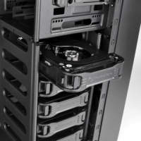 Установка дисків в корзину проводиться за допомогою санчат. Їх конструкція забезпечує практично безлюфтовую фіксацію, тому кріплення за допомогою додаткових гвинтів в даному випадку не передбачено. Процес вилучення санчат з кошика дуже зручний, їх можна виймати навіть однією рукою. У правій бічній стінці є штампований виступ, що дозволяє використовувати інтерфейсні SATA-кабелі та з прямими, і з Г-подібними коннекторами.