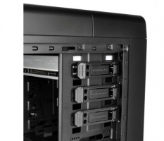 Пристрій має три слота для 5-дюймових пристроїв з виходом на лицьову панель і один - для 3,5-дюймових пристроїв. Кошик для жорстких накопичувачів розташована поперечно. Вона одна і характеризується стаціонарним форм-фактором. Накопичувачі в кошик встановлюються за допомогою пластикових санчат. Конструкція засувок аналогічна конструкції засувок інших корпусів Thermaltake серії Urban, а ось форма рукоятки більше нагадує рукоятку моделі Chaser A31. 3,5-дюймові накопичувачі кріпляться не за допомогою штифтів, а за допомогою гвинтів через прокладки-амортизатори, як у моделі Overseer RX-I. Також в кошик можна встановлювати і 2,5-дюймові HDD / SSD, які необхідно кріпити за допомогою гвинтів.