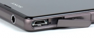 Завдяки невеликим розмірам, вдало підібраним товщині і масі корпусу, а також шорстким поверхонь металевих граней бічний рамки смартфон в руці розташовується дуже комфортно і утримується досить надійно. Складання деталей виконана на дуже високому рівні: ніяких люфтів або скрипів користувач не помітить - все елементи підігнані одна до одної ідеально. Кормі того, сам принцип конструкції виключає наявність таких неприємних серця і вуха користувача моментів, так як пристрій виконаний в моноблочному форм-факторі і не має ніяких знімних частин або розсувних механізмів. Немає у смартфона і знімною задній панелі - все слоти для карт розташовані на бічних гранях. SIM-карта та карта пам'яті встановлюються в щілинні бічні слоти традиційними способами - SIM-карта в'їжджає в роз'єм на висувному пластиковому таці, а карта пам'яті захоплюється підпружиненим механізмом. Спосіб установки SIM-карт у компанії Sony є найбільш зручним з усіх варіантів установки телефонних карт в бічні грані смартфонів, так як на пластиковому таці є зручний виступ для захоплення нігтем і висувається він без жодних зусиль, а інші варіанти припускають використання для вилучення картки додаткових інструментів (пінцета, ключа-скріпки і ін.).