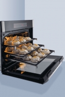 Наприклад, такі моделі, як духова шафа-пароварка BS270 (Gaggenau, Німеччина) завдяки підключенню до водопровідної системи, контролюють кількість води, і стежити за процесом приготування необов'язково. А працює це так. Спочатку в залежності від режиму температура в духовці піднімається до 30-230 градусів, потім вбудований парогенератор подає пар (вологість 30-100%), і блюдо готується. А модель В 9820-4 (АЕG, Німеччина) має три види парової обробки: Vital - для приготування овочів, риби і рису, Interval - завдяки попеременному впливу гарячого повітря і пара можна приготувати соковите печеня або хрусткі кондитерські вироби, Combi - чергування режимів нагріву духовки і подачі пари дозволить одночасно зробити і основне блюдо і гарнір. Але існують і інші методи обробки паром. Наприклад, в духовій шафі H 5981 BP (Miele) перед початком роботи в спеціальну трубку ставлять ємність з водою, духовка «бере» потрібну кількість рідини і в процесі приготування перетворює її в пар. Подібна обробка парою хороша тим, що при випіканні з парою йде і жир, і скоринка виходить хрусткою.